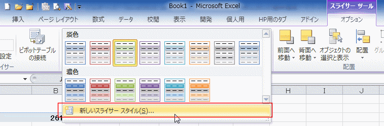 スライサー スタイル グループに表示されるスタイルを選択して適用します。