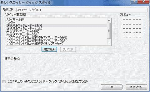 - 新しいスライサー クイック スタイル ダイアログボックスが表示されます。