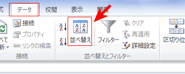- [データ]タブの[並べ替えとフィルター]グループにある[並べ替え]を実行します。