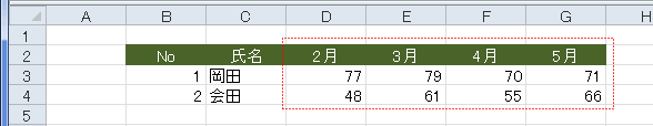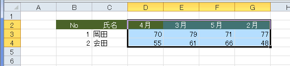 下図は2〜5月のデータが不順になっているので、昇順に並べ替えたい・・・という例です。