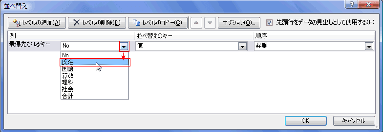 - [データ]タブの[並べ替えとフィルタ]グループにある[並べ替え]を実行します。