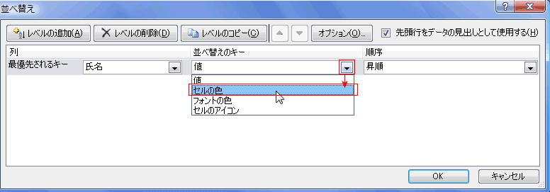 よねさんのExcelとWordの使い方|エクセル2010基本講座:目次|並べ替え|色による並べ替え
