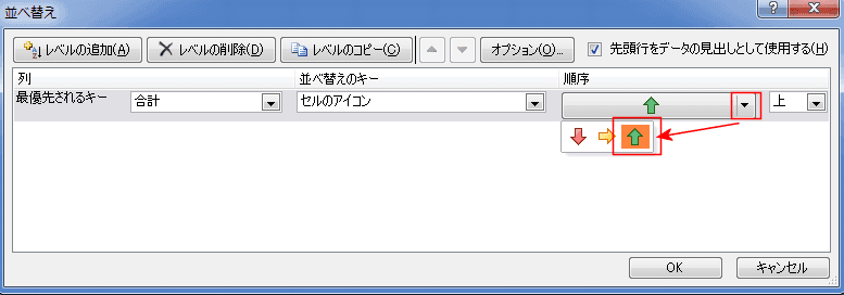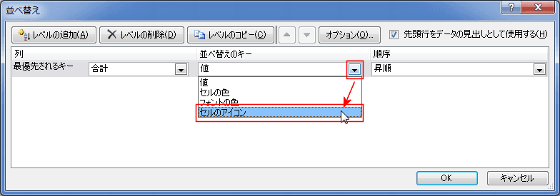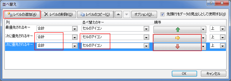 - Excel2007以降ではセルのアイコンによる並べ替えができるようになっています。