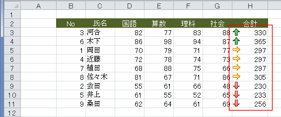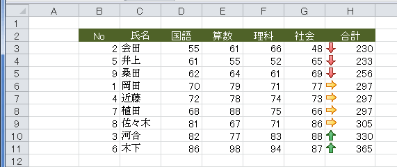 よねさんのExcelとWordの使い方|エクセル2010基本講座:目次|並べ替え|セルのアイコンによる並べ替え