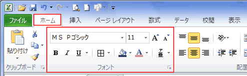 ホームタブのフォント グループ Topへ