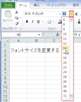 - [フォントサイズ]のドロップダウンリストを開き適切なサイズを選択します。