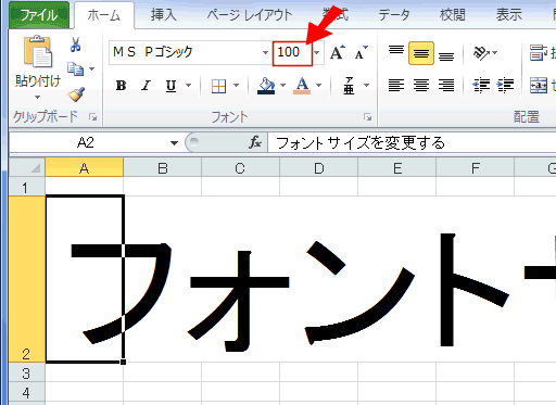 - ドロップダウンリストに表示されていないサイズにしたいときは、フォントサイズのボックスに直接入力します。