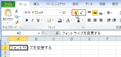 - [フォントサイズの拡大]または[フォントサイズの縮小]を実行します。