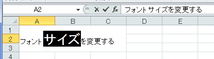- 文字列の一部を変更したいときは、セル内 または 数式バー内で変更したい文字列を選択してからサイズを変更します。