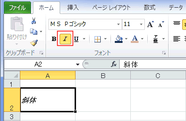 - [斜体]を実行します。