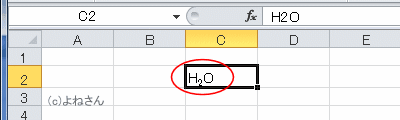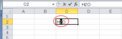 - セル内での表示が下付きになりました。なお、数式バーのほうは変化しません。