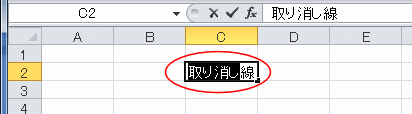 - セル内または数式バーで取り消し線を入れたい文字列を選択します。