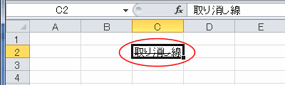 - セル内で選択していた文字列に取り消し線が付きました。なお、数式バーのほうは変化しません。