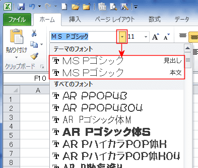 - なお、テーマのフォントを使うとテーマを変更すると、テーマに応じたフォントに変更されます。