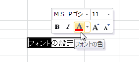 - [フォントの色]ボタンの右の▼をクリックしてドロップダウンから適切な色を選択します。