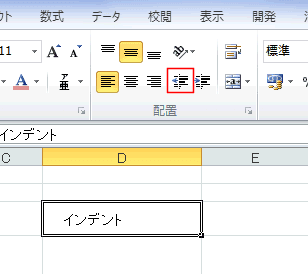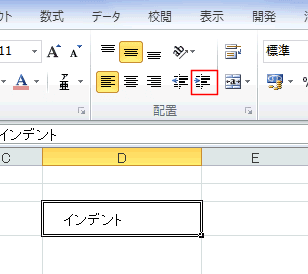 - セルの左側に余白を挿入します。文字列自体は変化しません表示上の位置が変化します。