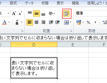- セルに収まりきらないような長い文字列をセル幅で折り返して表示する設定です。