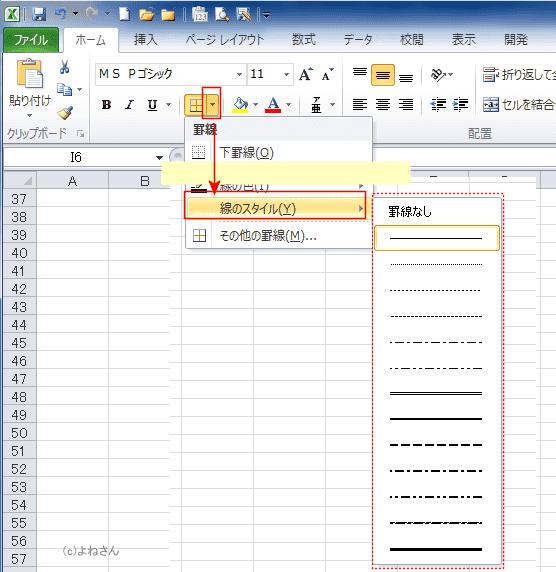 よねさんのExcelとWordの使い方|エクセル2010基本講座:目次|書式・表示形式|罫線の太さを細くしたい
