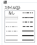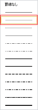 - [罫線]ボタンの線のスタイルでは罫線なしの次の次、細かい点線に見えるスタイルを使います。