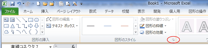 - 描画した直線を選択して、描画ツールの図形スタイルにあるダイアログボックス起動ツールをクリックします。