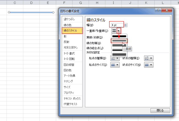 - [線のスタイル]を選択します。
