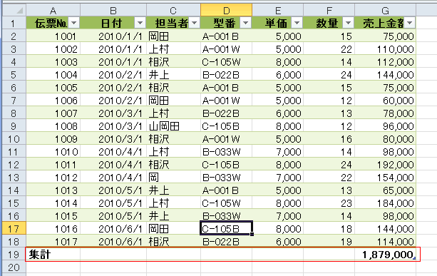 よねさんのExcelとWordの使い方|エクセル2010基本講座:目次|テーブル機能|テーブルでの集計