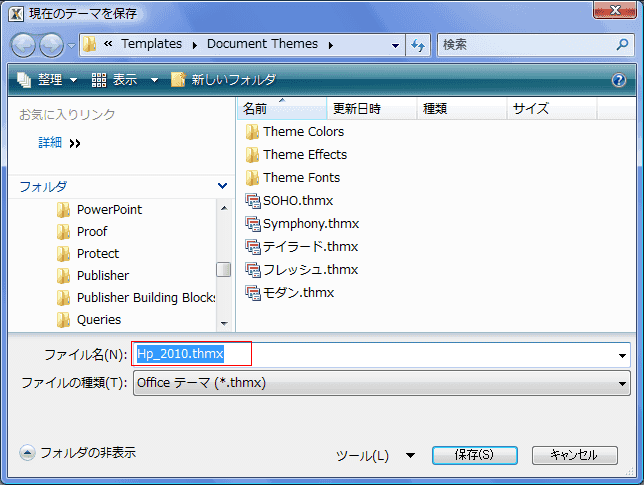 - ファイル名に登録したいテーマ名を入力し、[保存]ボタンをクリックして保存します。