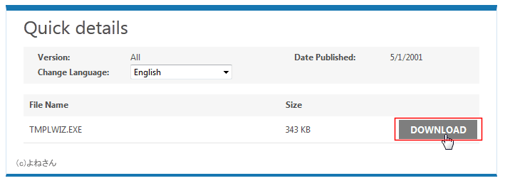 - ファイル名は「TMPLWIZ.EXE」となっていますので、実行ファイルになっています。