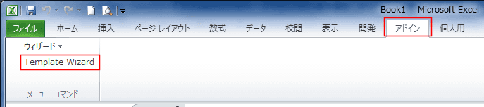 - アドイン タブを選択すると、「Template Wizard」がありましたので、クリックして実行しました。