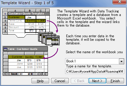 実際にExcel2010で使用できるかは データ追跡機能付きテンプレート ウィザードを使う を参照してください。