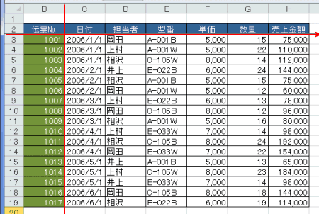 - シートの先頭の列を固定することができます。