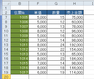 - 列も同様に非表示にします。