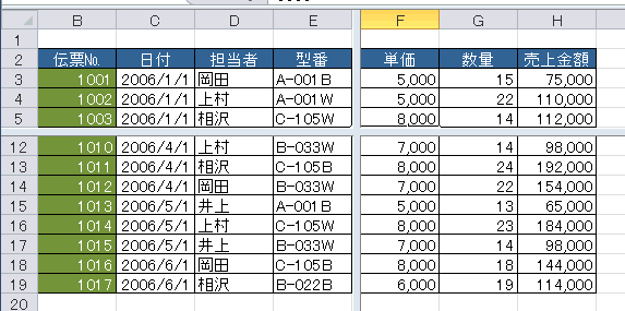 項目列や項目行を常に表示しておくには「ウィンドウ枠の固定」を利用します。