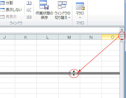 - シート内の離れた部分を表示したいときには、ウィンドウの分割が利用できます。