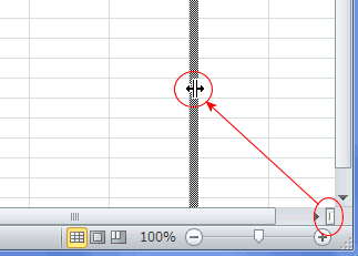 垂直に分割しているバーはシートの左端または右端へドラッグします。