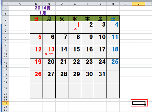 表示を固定したい部分の右下のセルを選択します。下図ではJ23セルを選択しています。