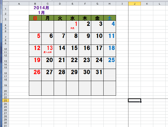 J1セルを選択して、[Shift]+[Ctrl]+[→]でJ1以降を選択します。