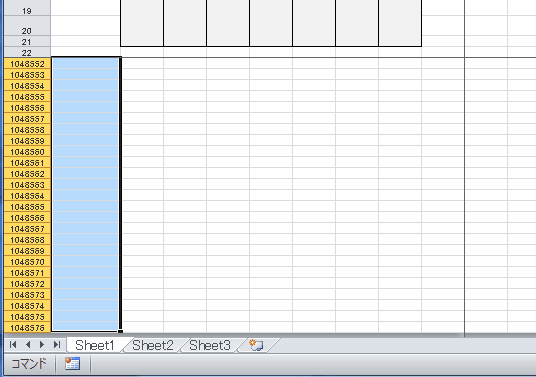 - このままでは、下方向へセルを選択して移動することができますので23行目以降を非表示にします。