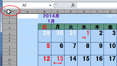 - [すべて選択]ボタン(下図の列番号と行番号のコーナー部分)をクリックして、シート全体を選択します。