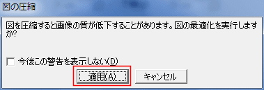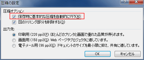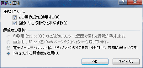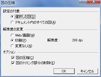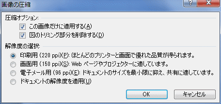 - 「図の圧縮」ダイアログで設定を確認して[OK]ボタンをクリックします。