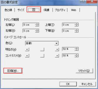 または、図の書式設定ダイアログの図タブで[圧縮]ボタンをクリックします。