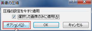 - 「図の圧縮」を実行します。[オプション]ボタンをクリックします。