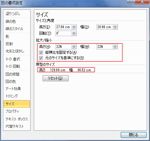 図の書式設定ダイアログを開くと下図のようになっていました。