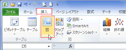 - [挿入]タブの[図]グループにある[図]を実行します。