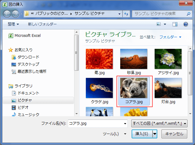 - セル内に図(写真や画像)を配置したいときの操作方法です。