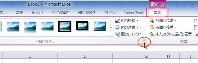 - 図を選択して、図ツールの図のスタイルグループにあるダイアログ起動ツールをクリックします。