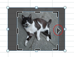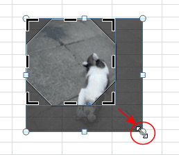 - 右下のハンドルにマウスポインタを合わせ、[Shift]キーを押しながらドラッグして写真を拡大します。