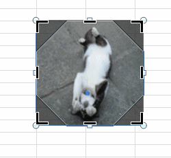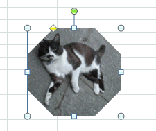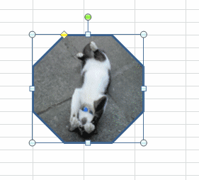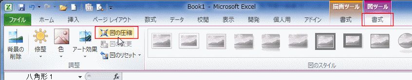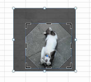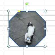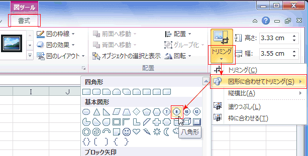 - 「図ツール」リボンの[書式]タブのサイズグループにある[トリミング]→[図形に合わせてトリミング]→[八角形]を選択しました。