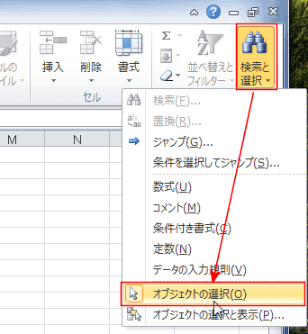 - [ホーム]タブの[編集]グループにある[検索と選択]→[オブジェクトの選択]を実行します。