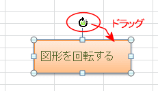 - 図形を選択して、緑色の回転ハンドルをドラッグして図形を回転することができます。